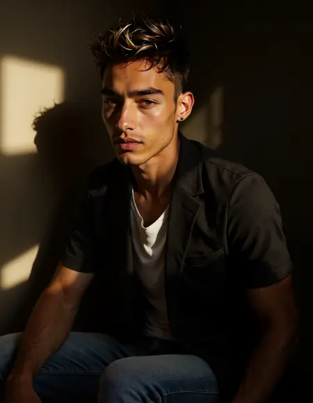 カスタムAIキャラクター。今回は彼の胸にタトゥーを焼き付けてLoRAに組み込みましたが、時々しか表示されません。表示させたい場合は、「彼は胸にタトゥーがある」などのタトゥーに関するプロンプトを追加すると、一般的なデザインの概念が得られるはずです。これはあえてオプション機能として実装したと仮定しましょう。