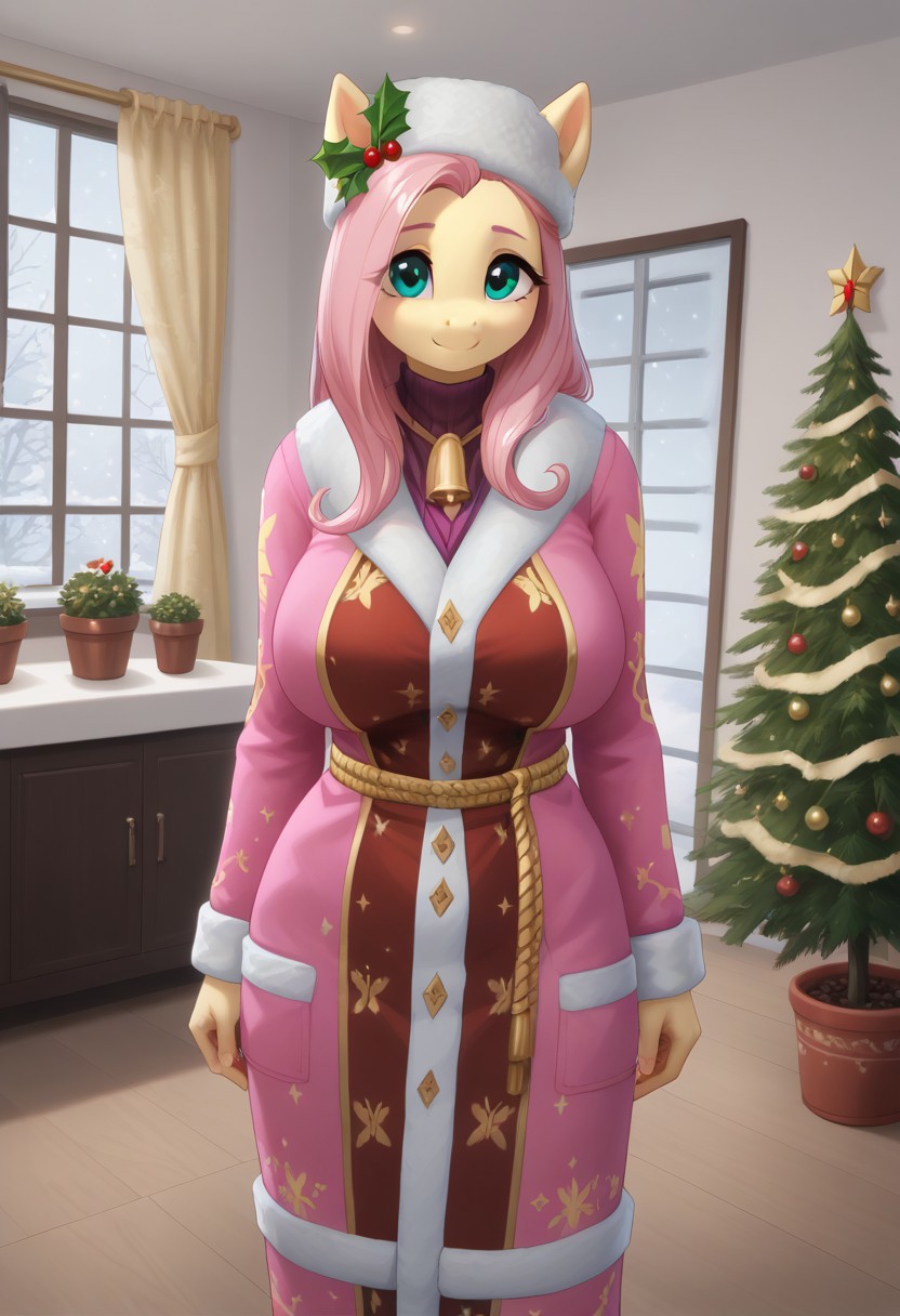 winter clothes , fur hat , blue clothes ,