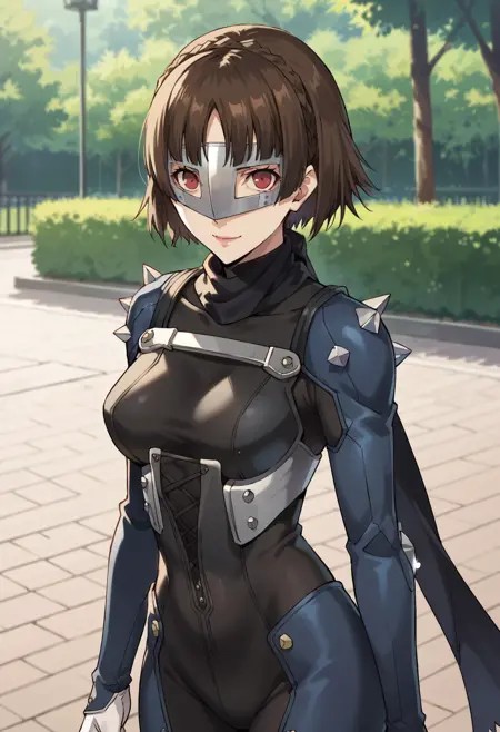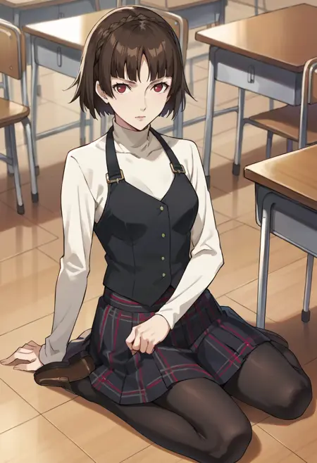 p5makoto, niijima makoto, 갈색 머리, 평범한 앞머리, 왕관 땋은 머리, 붉은 눈,