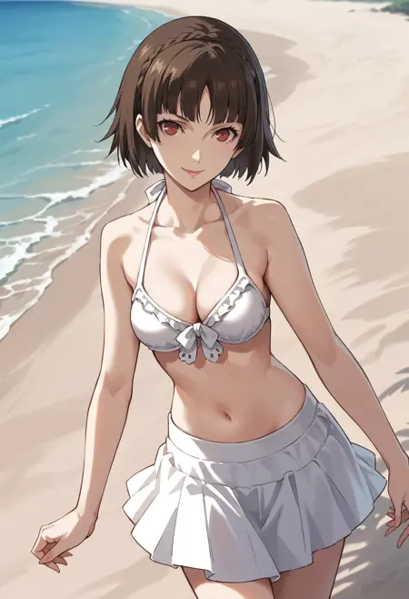 p5makoto-swim, 수영복, 비키니, 프릴, 흰 비키니, 비키니 치마,