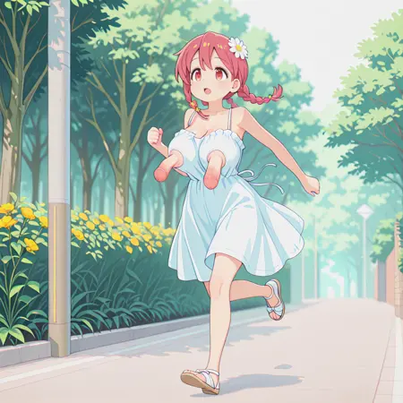 무작위로 머리가 프레임 밖으로 나가는 경향은 아직 일부 남아 있지만, '전신'과 같은 태그로 완화됩니다. 색상이 지정되지 않으면 옷은 자주 파란색이 됩니다. 약 90%의 안정성을 추정하지만, 여전히 무작위로 추가 남성기가 생성될 수 있습니다.