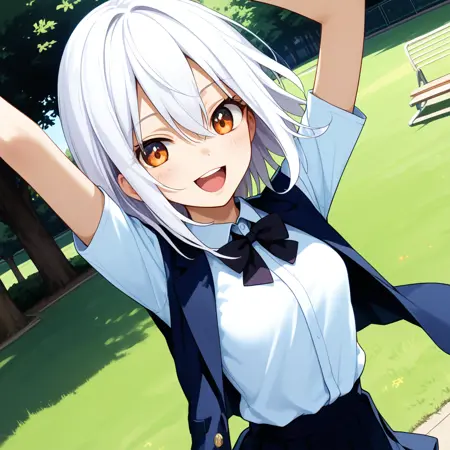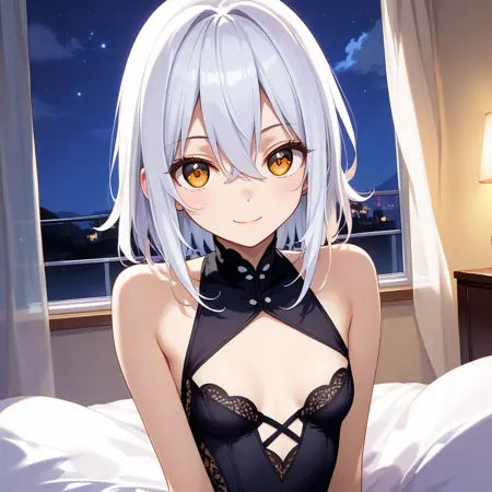役立つタグ:ダークオレンジの目、白髪、ミディアムヘア、前髪、目と目の間の髪