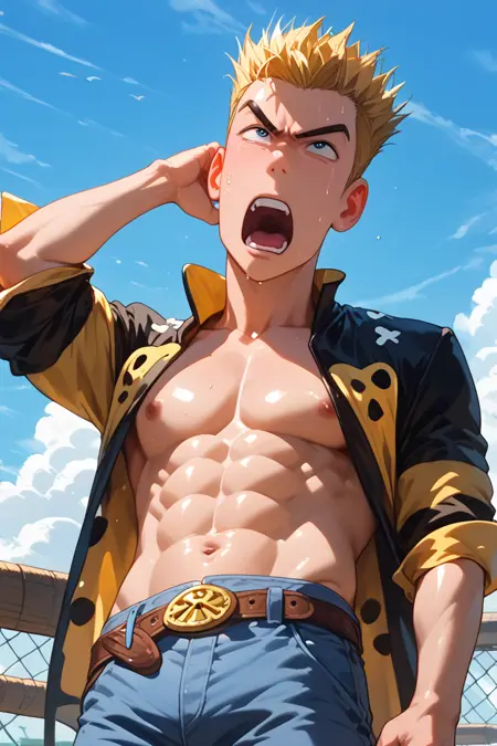 保持主体焦点与类别不变,但添加矛盾的身体部位标签,例如在男性角色上添加 "breast" 以强化胸肌,或在女性角色上添加 "penis" 以生成双性角色