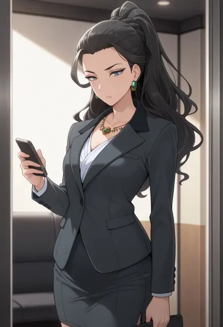 트리거 단어: mishiro joumu, 검은 머리카락, 폰테일, 긴 머리, 녹색빛 파란 눈