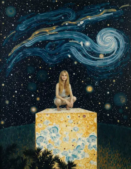 詳細で複雑なプロンプトを与えると、絵画的な美しさから外れ、テーマに沿った写真のような仕上がりになることが多く、それもまた魅力的です。本物の絵画的美しさを求める場合は、シンプルに始めるのがおすすめです。1. キャラクターを定義し、2. 衣装、設定、テーマ、または行動を定義してください。その後はスタイルに導かれてください。