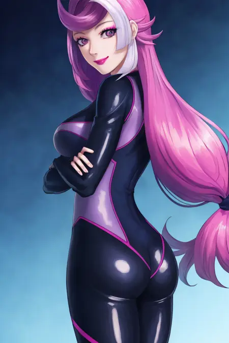 提示词:ghost_girl, 项圈, 黑色手套, 皮带, 连体衣, 妆容, 头盔, 口红, 摩托车服