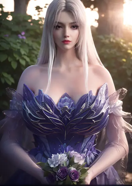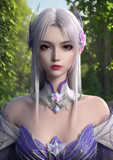 提示词参考: 1girl, solo, hair ornament, dress, choker