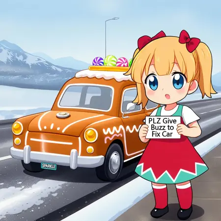 Note the lora itself doesn't actually include any people or characters in it, just all kinds of gingerbread houses and buildings and things in multiple styles (realistic, cgi render, cartoon/anime), and it can be used with characters for backgrounds or scenes as you can see in some of the pics I've made with it :D