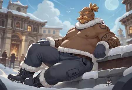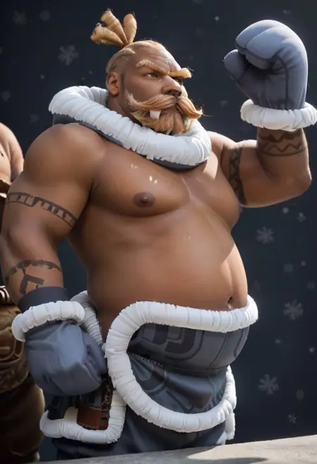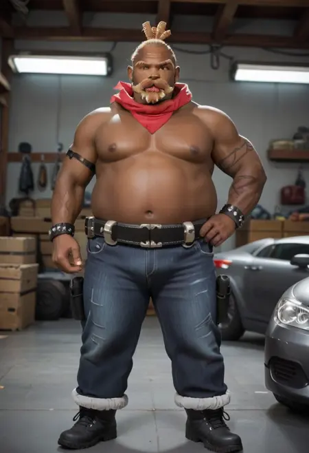 Fat, fat man, facial hair, darkskin, tatoo, blonde hair, topless male, nipples, dark-skinned male, muscular male, mustache, beard, dreadlocks,