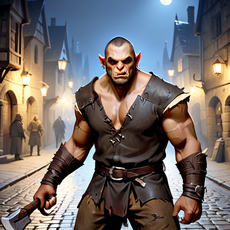 Leans super heavy into axes, and shirtless. Prompt appropriately.