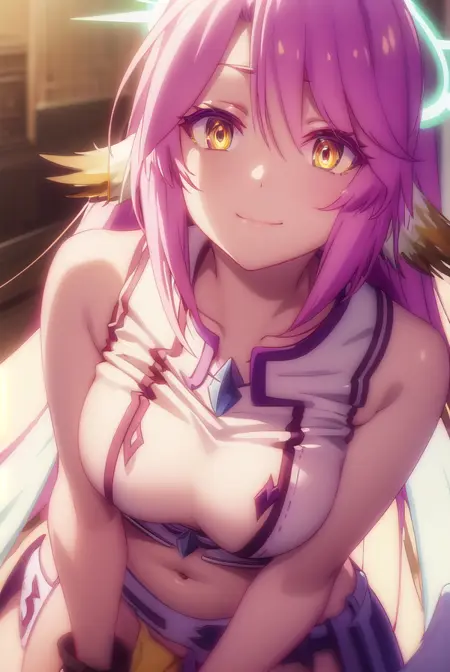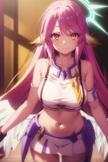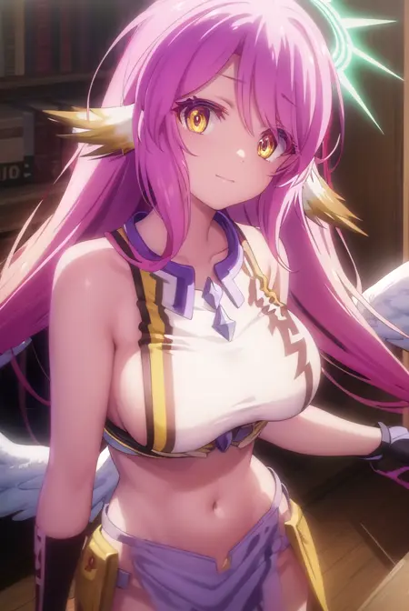 jibril, アンジェル, アンジェルの翼, 動物の耳, 鳥の耳, 方位磁針ローズの halo, 羽根の翼, 羽根, グラデーション髪, halo, 長い髪, 低めの翼, 多色髪, へそ, ピンクの髪, 記号形の瞳, タトゥー, 白い翼, 翼の耳, 翼, (黄色い目:1.5)