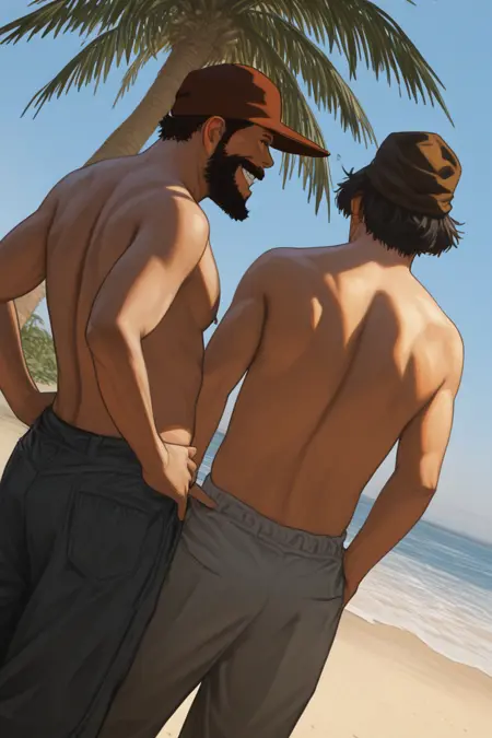 保留主体焦点与类别,但添加矛盾的身体部位标签,例如在男性角色上加 "breast" 标签以强化胸肌,或在女性角色上加 "penis" 标签以生成半男半女形象。