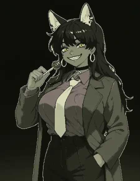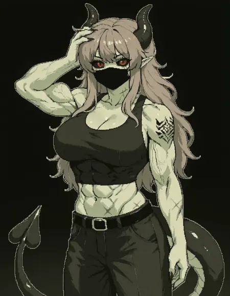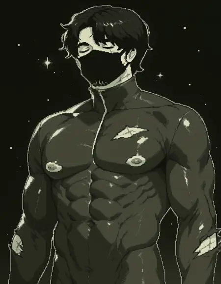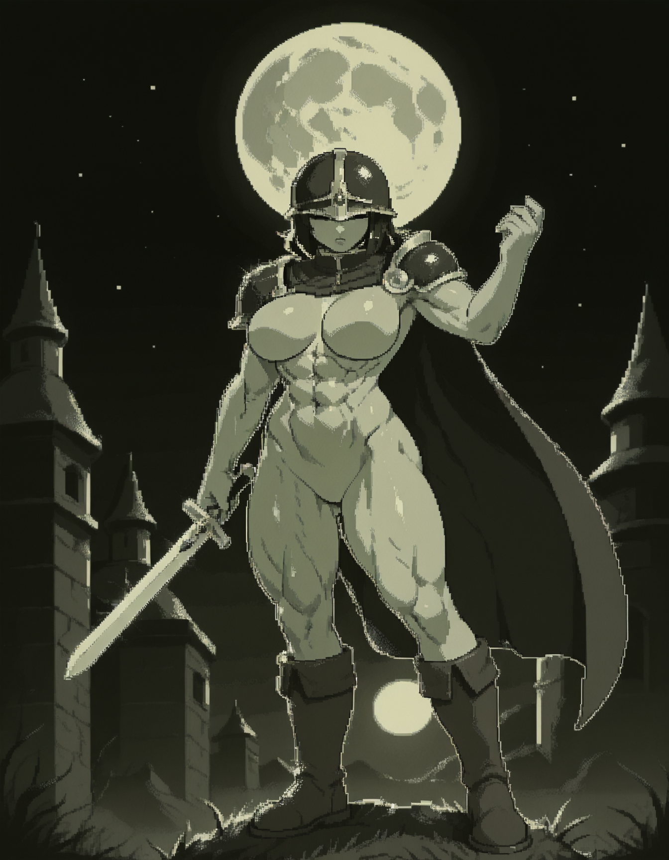 다음 트리거 사용: SpoiledMuffin, monochrome, pixel theme, gradient, dark background,