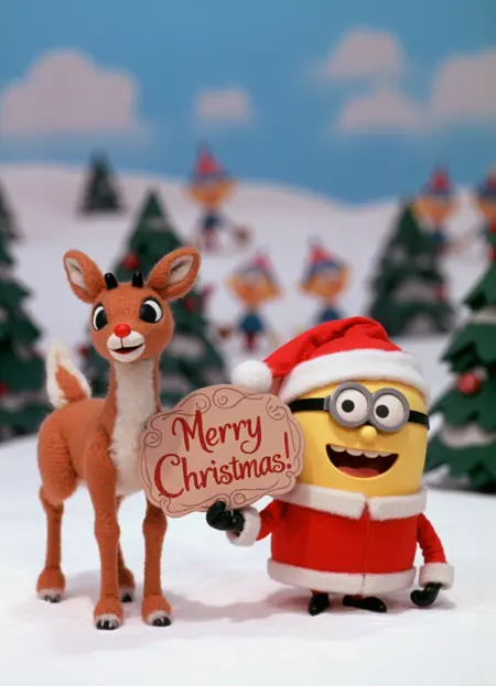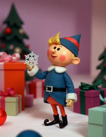 このLoRAは、1964年のストップモーションTVスペシャル『ルドルフと赤い鼻のトナカイ』(https://www.imdb.com/title/tt0058536/)のスタイルを再現します。この映画は世代を超えてストップモーションアニメーターたちに影響を与え、見るだけで非常に素晴らしい作品です。