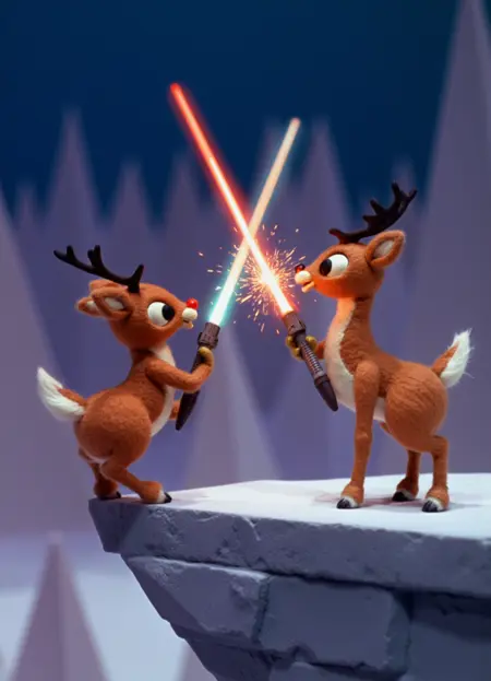 这个LoRA重现了1964年定格动画电视特辑《红鼻子驯鹿鲁道夫》(https://www.imdb.com/title/tt0058536/)的风格。这部影片启发了无数定格动画师,整体视觉效果非常出色。