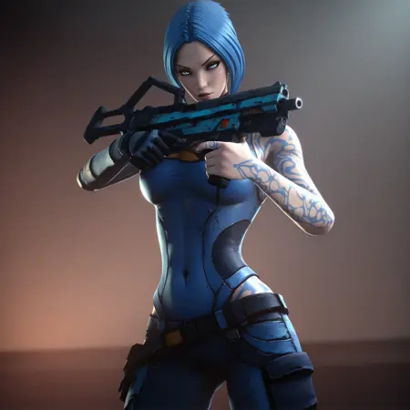 트리거: 파란 머리카락, 파란 눈, 마야, 파란색 몸 타투,