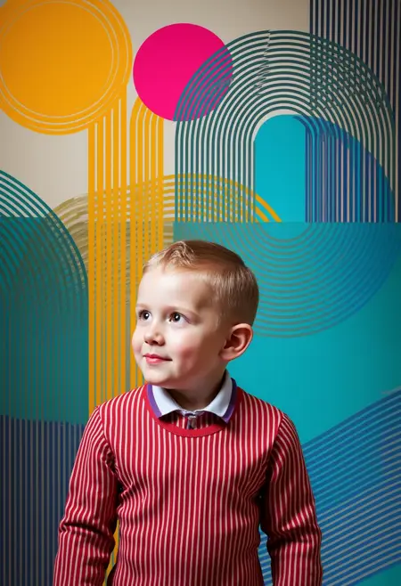 原色与均衡配色: 期待鲜明的红、蓝、黄三原色,与黑、白及中性色调巧妙搭配。模型经过精心训练的配色系统,帮助你的图像准确捕捉包豪斯的精髓。
