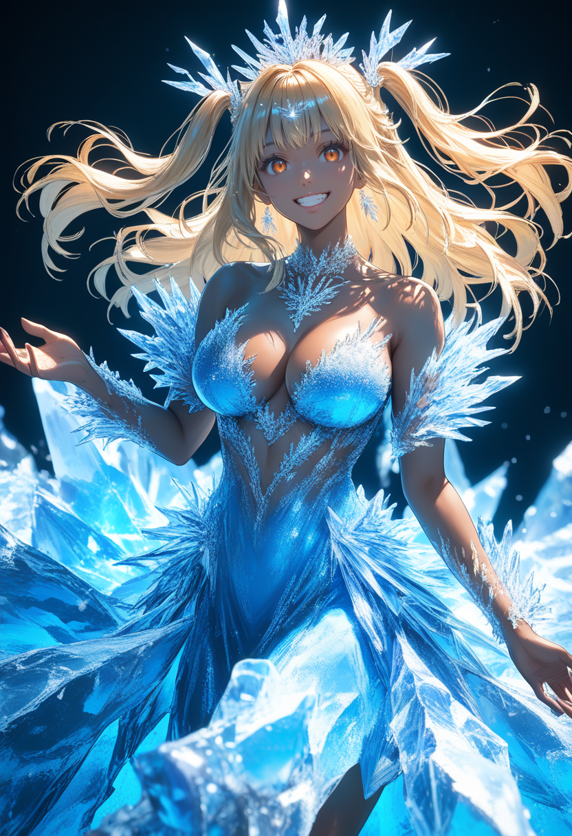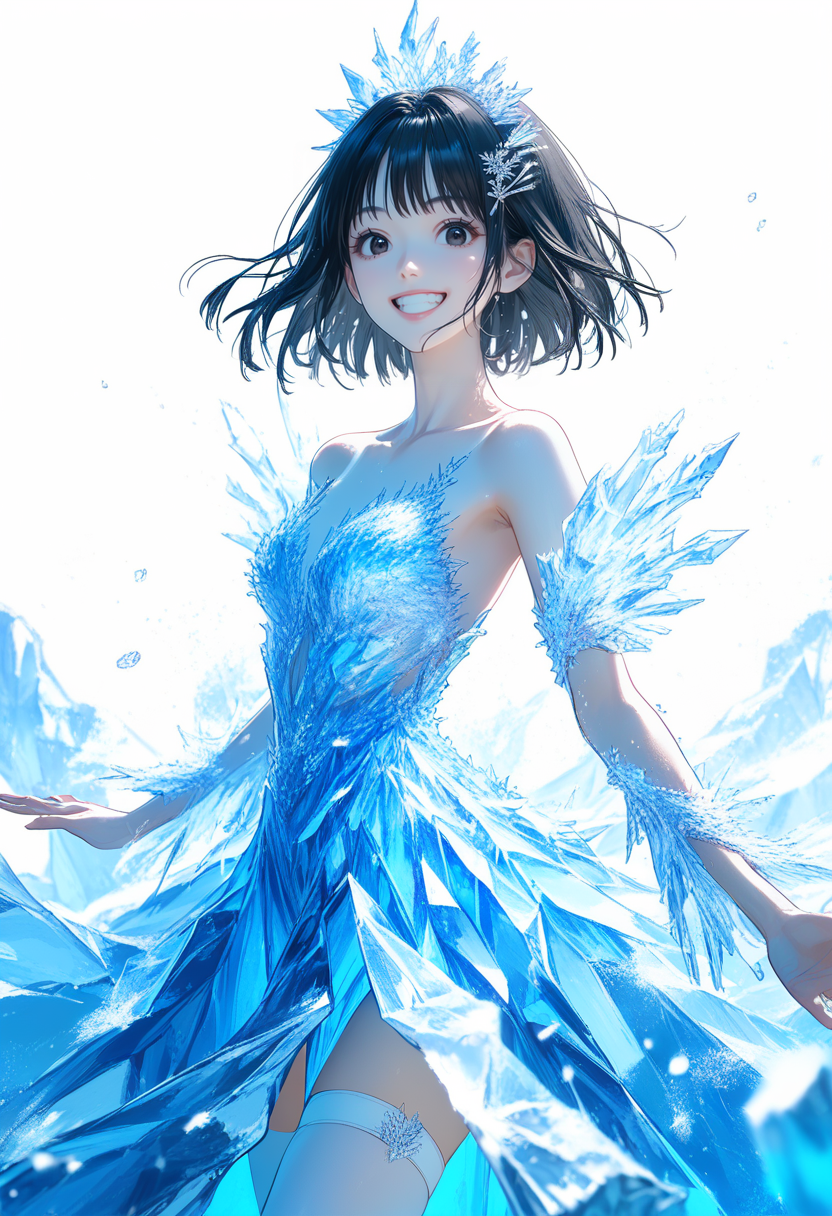 氷のドレスようなものを作成できるかもしれないLoRAです。たぶんリアル系のモデルでも使えます。