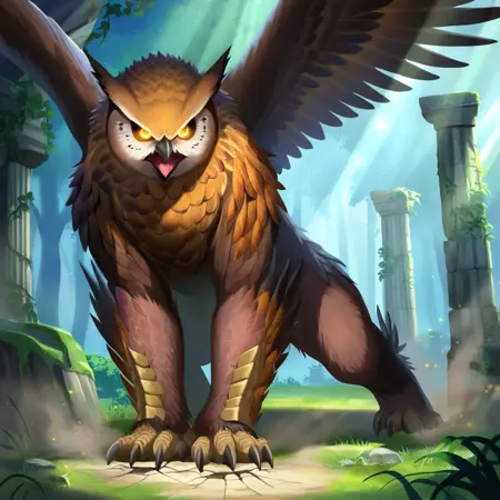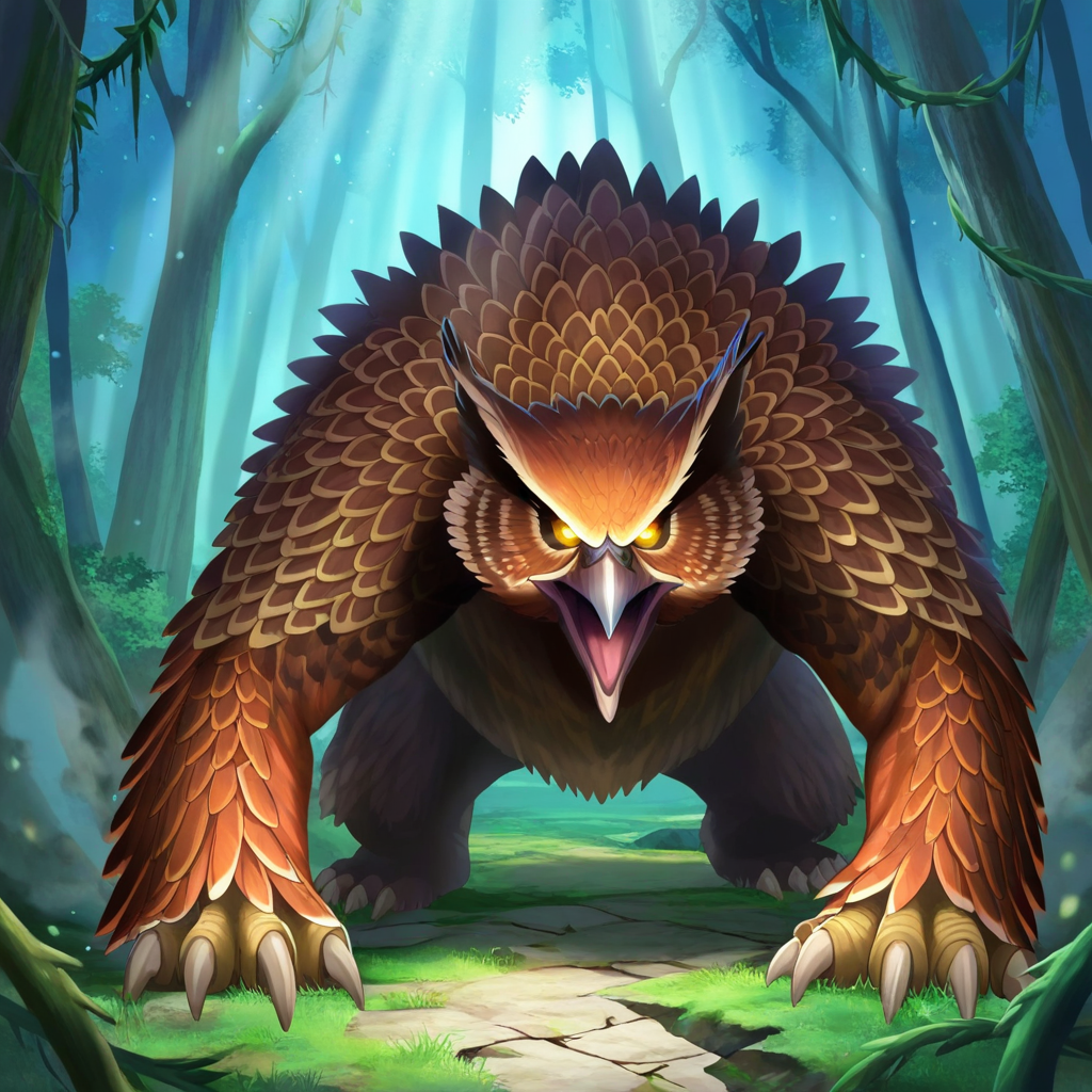 Origin: According to lore, owlbears were created by a wizard's magical experiments, blending the traits of an owl and a bear to create a guardian beast.