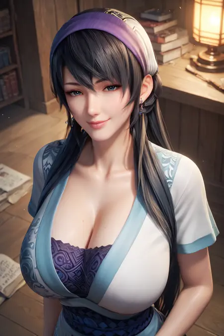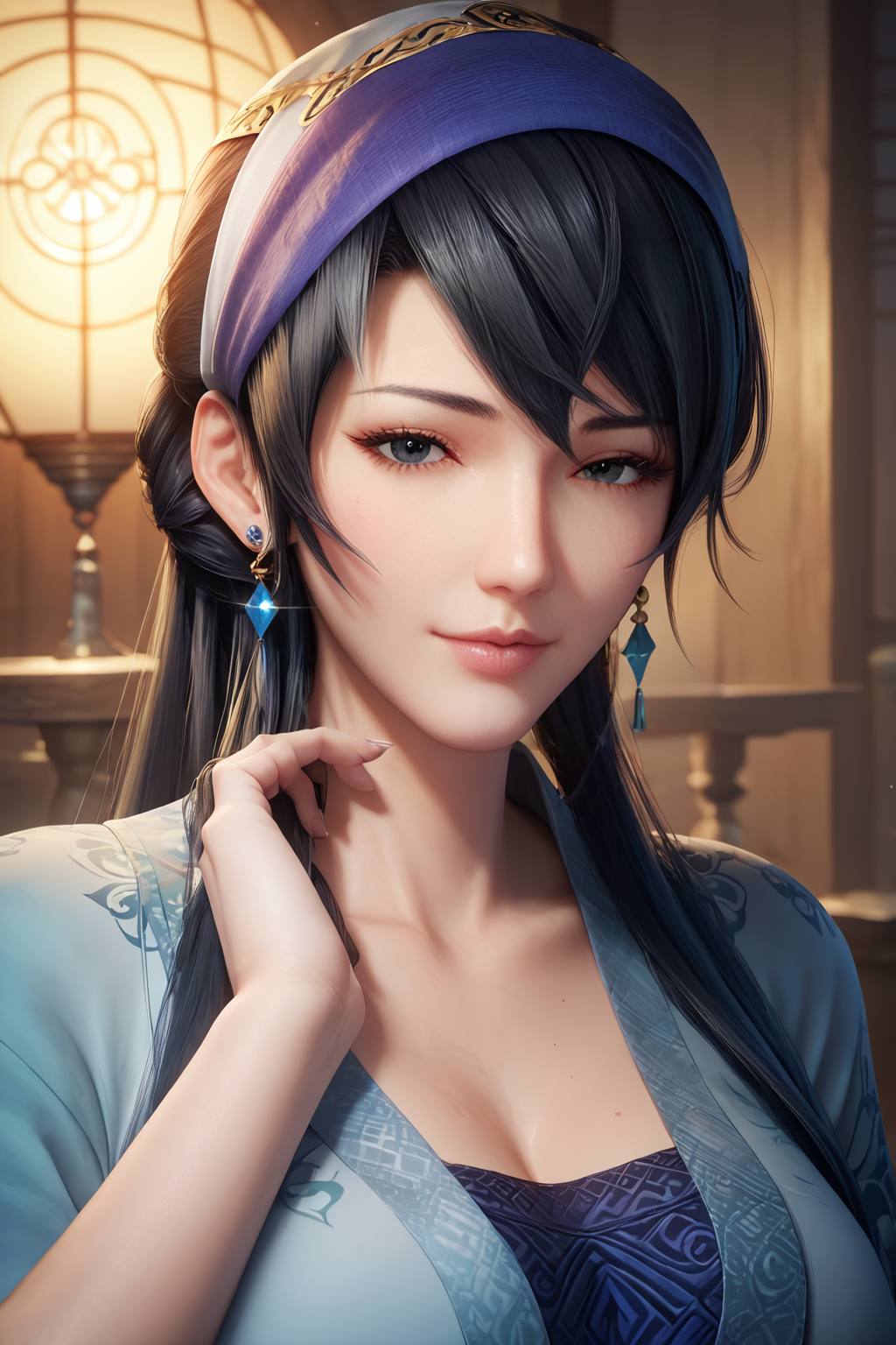 duanmu rong, long hair, black hair, earrings, hairband