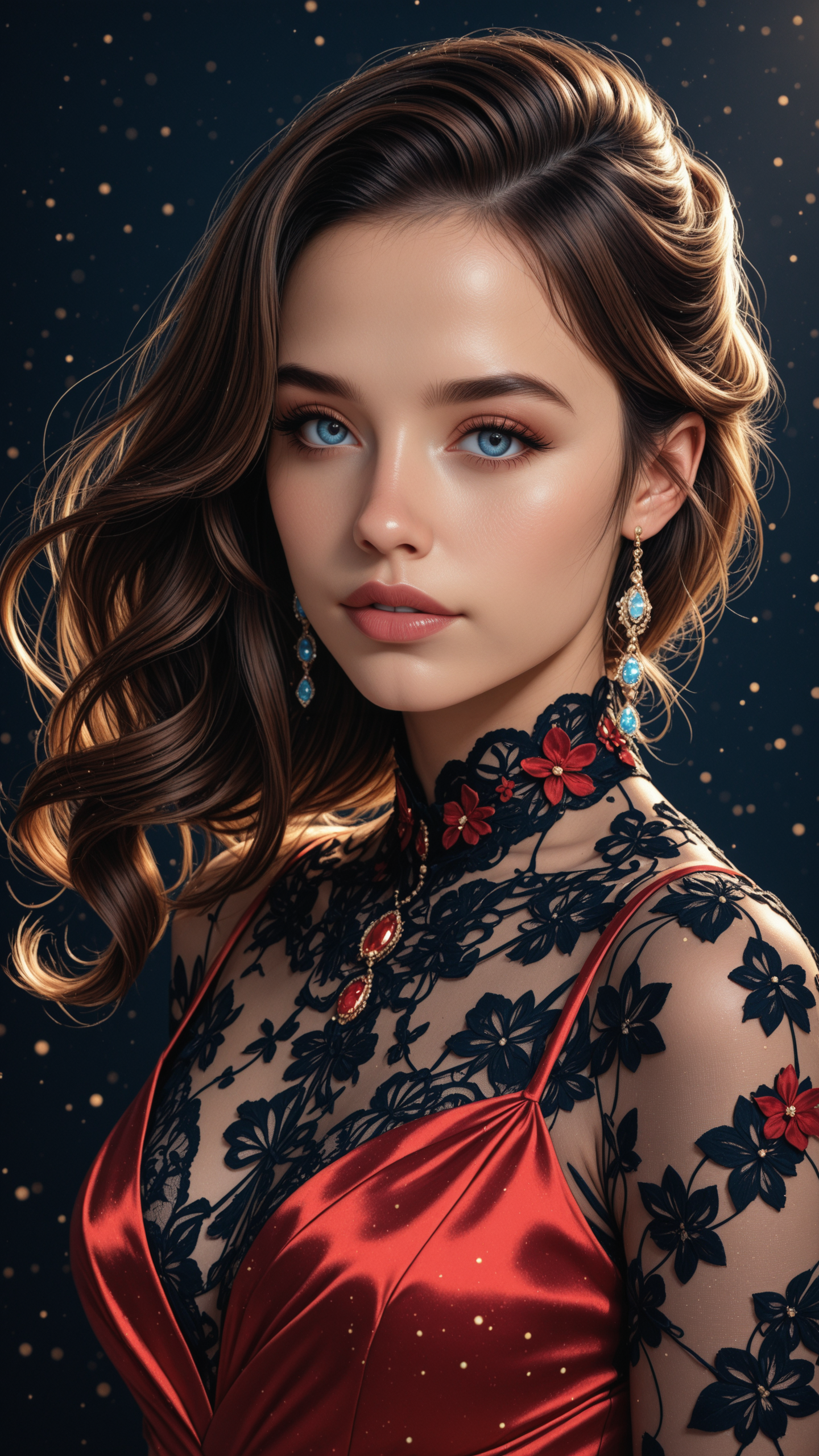 女性のプロフェッショナルで高品質、ハイパーリアリスティックなポートレート。超精密な目、リアルな肌の質感、繊細な顔の特徴、シネマティックな照明を特徴とする。Nikon Z7 II と NIKKOR Z 50mm f/1.8 レンズで低光環境下で撮影され、浅い被写界深度(ボケ)と RAW 写真品質を表現。マスターピースレベル、シャープでフォトリアリスティック、ファインアート写真スタイル。