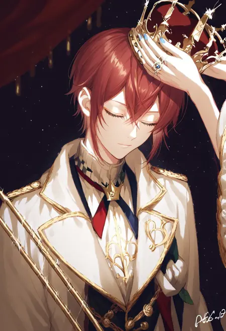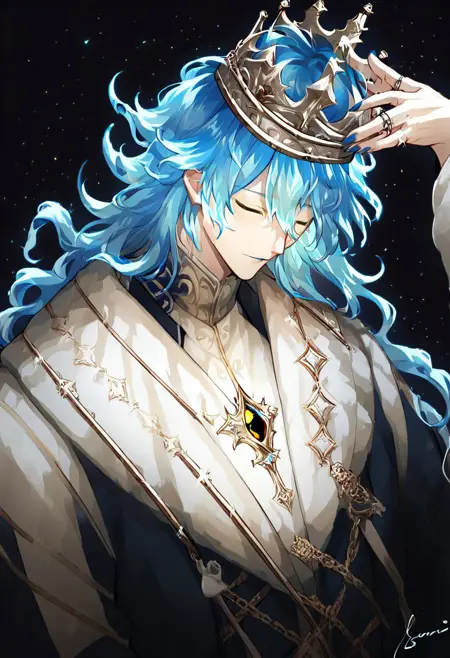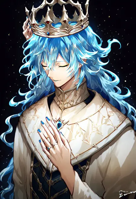| 训练词汇 | Solo, solo focus, crown, blue nails, upper body, solo, male focus, closed eyes, ring 已复制! solo focus, upper body, ring, 1boy, closed eyes, earrings, coronation, nail polish, solo, Solo 已复制! crown, blue nails, nail polish, 1boy, solo, male focus, jewelry, upper body, ring, coronation 已复制! |