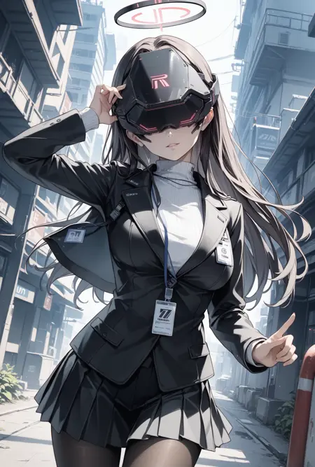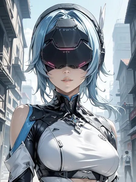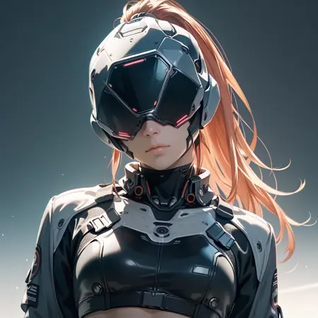 機能を制御するには、helmet および/または head-mounted display を使用してください。science fiction, covered eyes および/または cyberpunk を追加するのも有効です。推奨ウェイトは約1.0です。