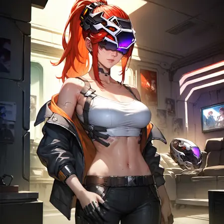 기능을 조절하려면 helmet과/또는 head-mounted display를 사용하세요. science fiction, covered eyes, 그리고/또는 cyberpunk을 추가하는 것도 도움이 될 수 있습니다. 권장 가중치는 약 1.0입니다.