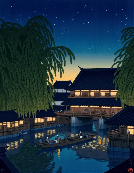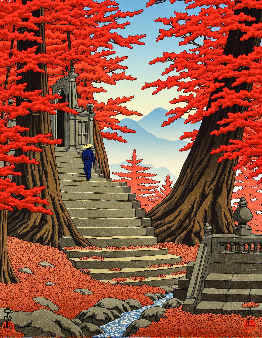 川濑巴水,又称川濑文次郎,是日本著名画家与版画家,以其精美的风景木版画而闻名。他于1883年出生,在20世纪初的“新版画”(Shin-hanga)运动中发挥了重要作用。