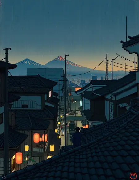他最广为人知的系列之一是《东京二十景》,描绘了东京及其周边的标志性地点,记录了20世纪初东京现代化进程中不断变化的城市景观。这一系列作品融合了传统日本美学与些许西方影响。