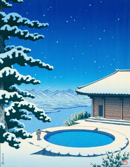 川濑的作品主要描绘日本乡村与城市的风景,捕捉了四季的美景,包括雪景、月夜和宁静的自然风光。他具有非凡的能力,能够传达地点的氛围与情绪,使作品充满宁静与沉思之感。