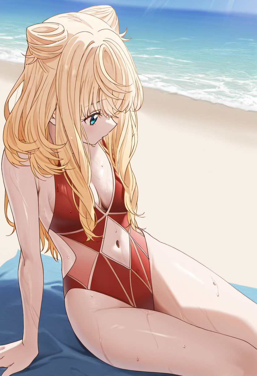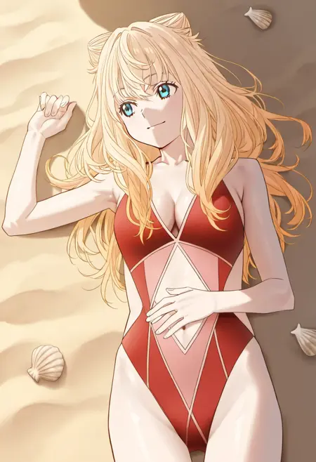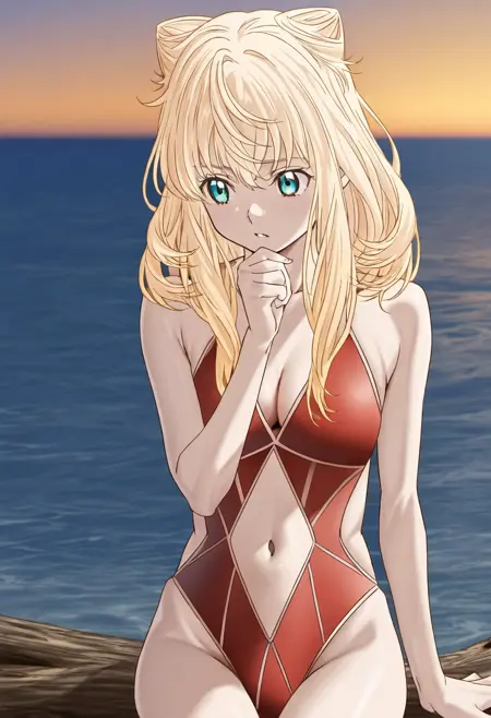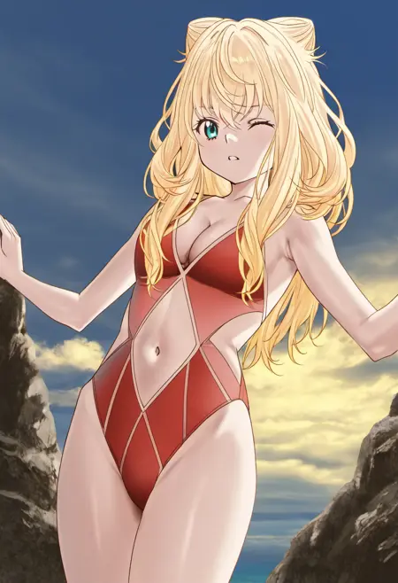 복장 프롬프트 B: 빨간 원피스 수영복, 캐주얼 원피스 수영복, 배꼽 컷아웃