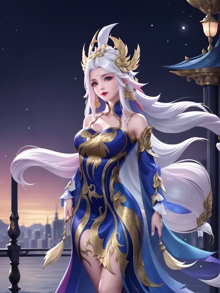 这是一个来自中国《王者荣耀》手游的角色——王昭君-青鸾有意。本LoRA训练图集不包含任何真人图片。