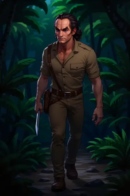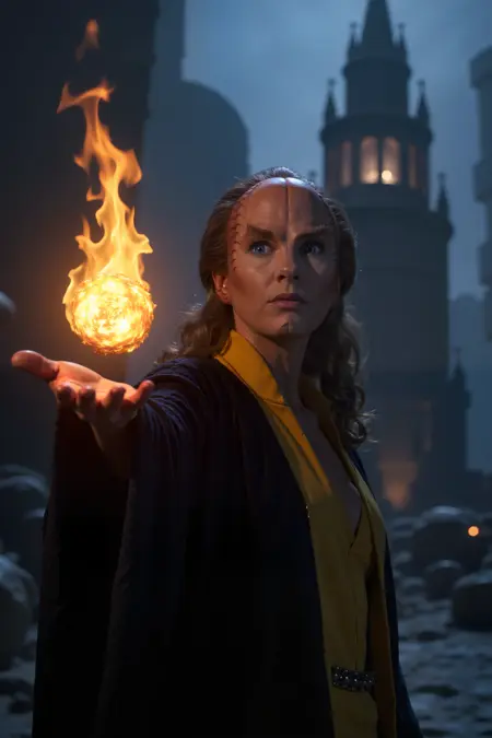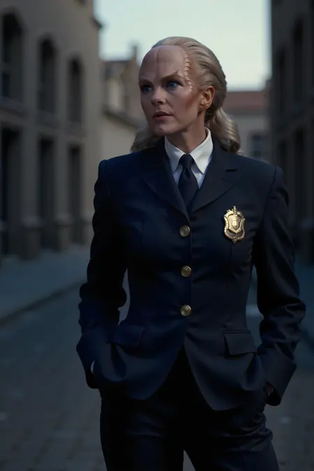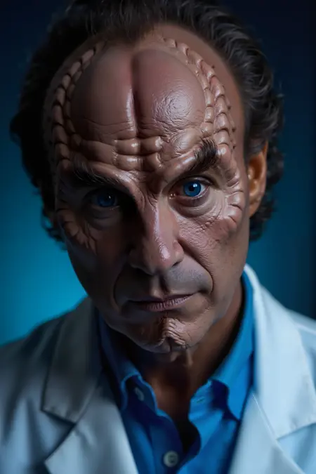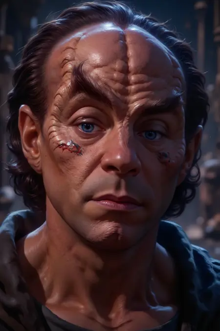 触发词为:“有凸起面部和深蓝色眼睛的德诺布兰人”