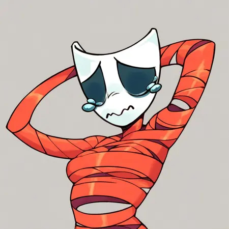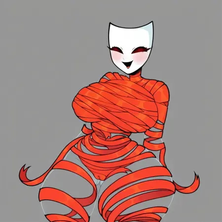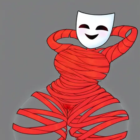 Gangle_(tadc), Female, body made of ribbon, mask for a head,