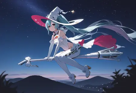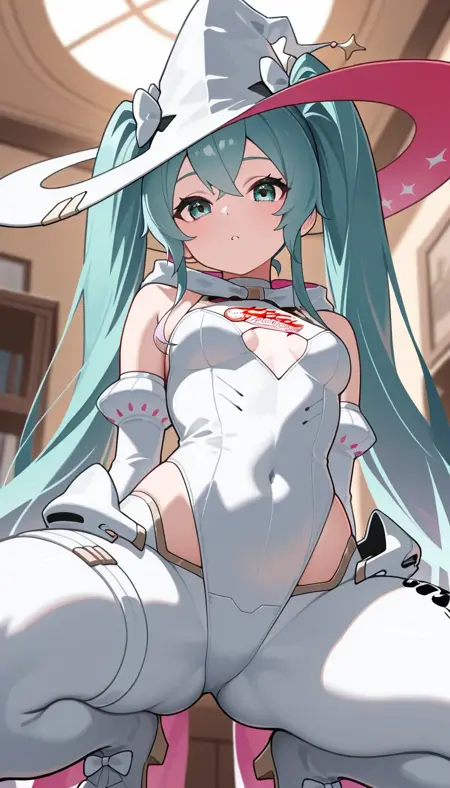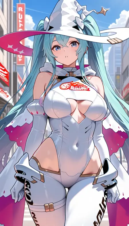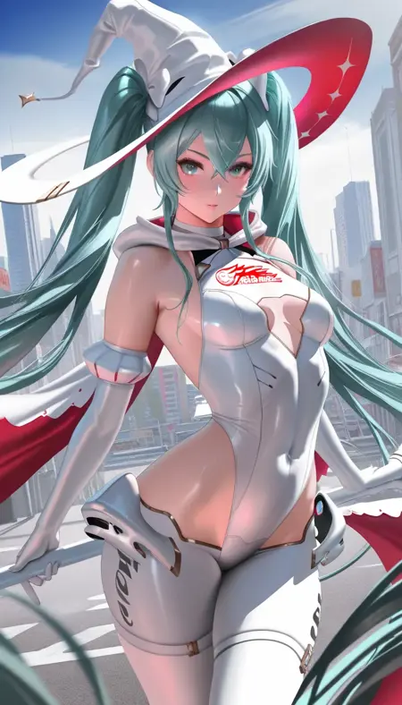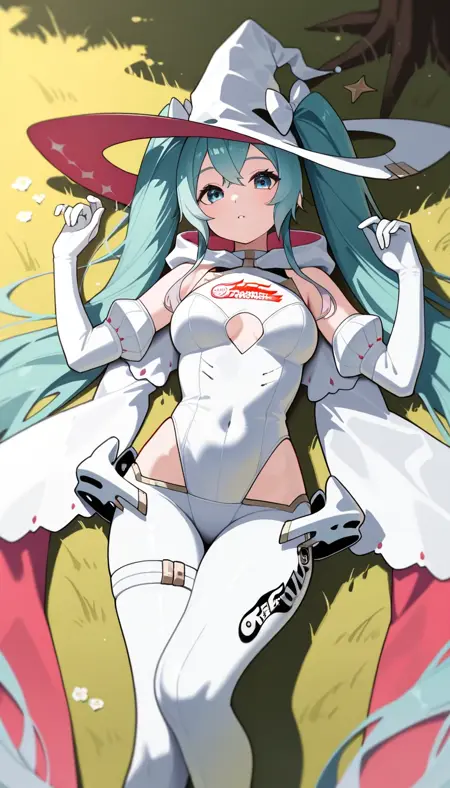 RacingMiku2024, hatsune miku, small breasts, witch hat,