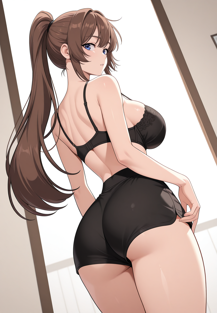 aliciaarden, 1girl, brown hair, long hair, blue eyes, ponytail