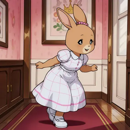 | 训练词汇 | PattyRabbitil, anthro, female, rabbit, tan fur, 已复制! white pinstripe dress, puffy short sleeves, collared dress, white shoes, beaded ear ornament,已复制! pink one-piece swimsuit, beaded ear ornament, 已复制! yellow nightgown, long sleeves, beaded ear ornament, pink slippers,已复制! pink dress, white apron, pink shoes, beaded ear ornament,已复制! |