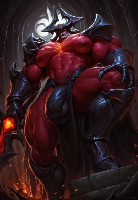 タグ: アトラックス、ダークイン、赤い肌、赤い目、角、鎧、League Of Legends