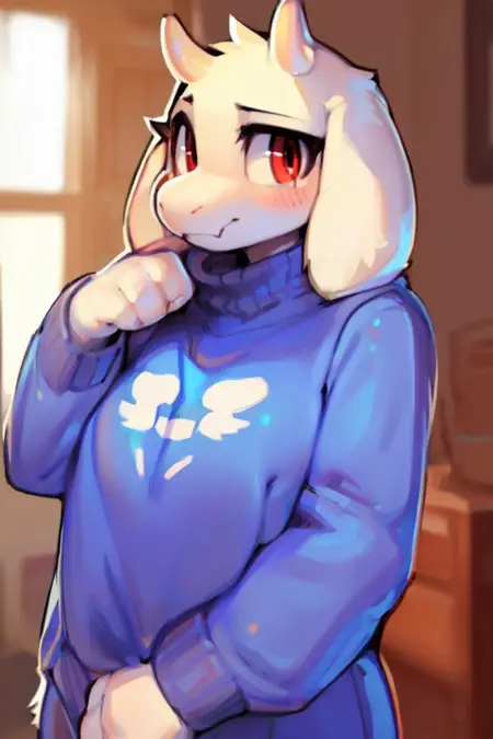 激活标签:Toriel、1girl、毛茸茸的女性、乳房、角、单独、脸红、山羊耳朵、毛茸茸的、山羊女孩、红眼睛