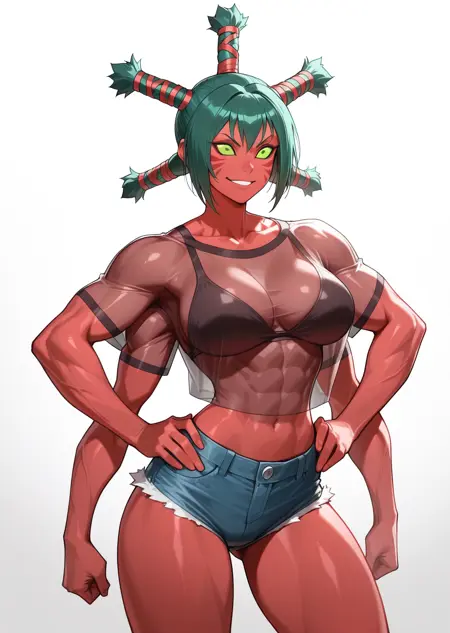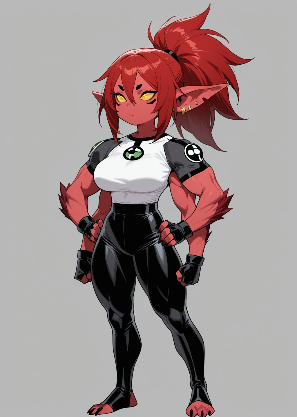 프롬프트: 빨간 피부, 근육질, 4개의 팔, 여러 개의 팔, 여러 개의 눈, 4개의 눈, 벤10, 큰, 외계인, 색상이 있는 피부,