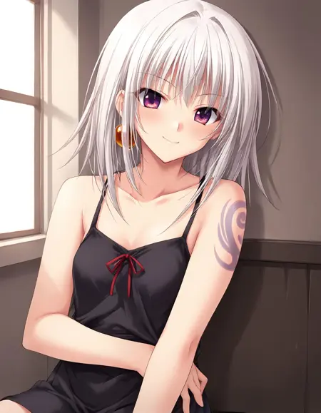 부정: 흰 배경, 단순한 배경, 오른쪽 어깨에 있는 문신
