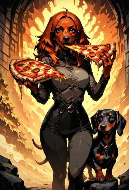 当我尝试生成腊肠犬时,Pony 和 IL 都未能成功,因此我为此制作了一个 LoRA。另外,是的,IL 版本是用我经常用作 Flux 风格展示的“比萨狗”训练的;d