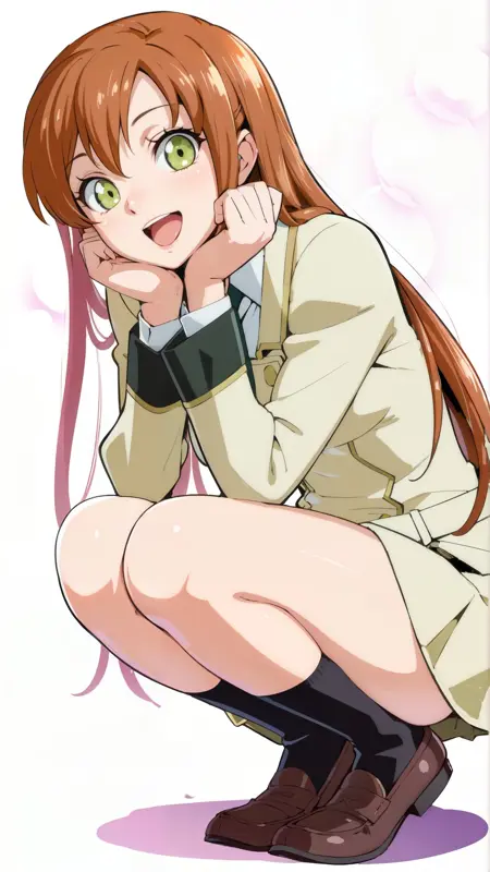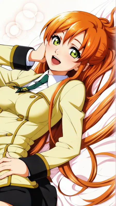 Example prompt : "shirley_fenette, an anime girl, 1girl, solo, long hair, looking at viewer, smile, open mouth, skirt, simple background, long sleeves, white background, very long hair, school uniform, green eyes, jacket, :d, necktie, orange hair, hand on hip, ashford academy school uniform"