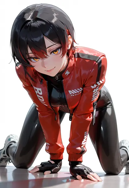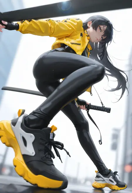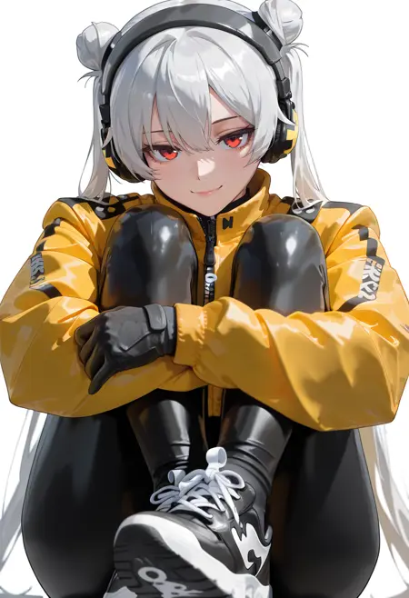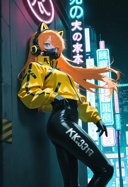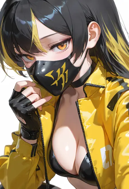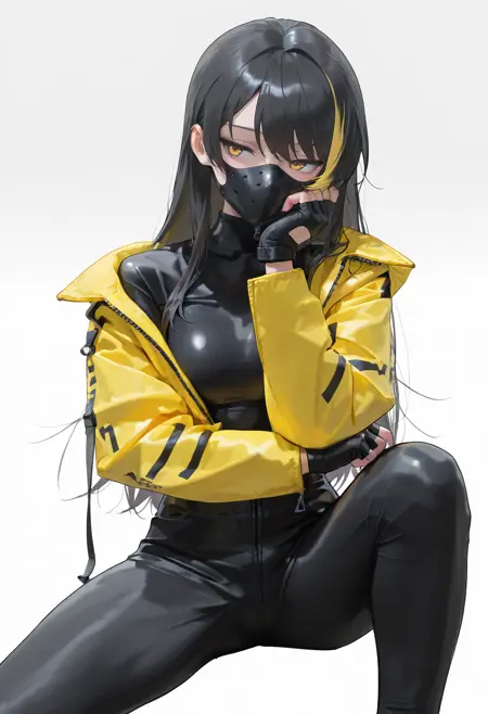 sk997cos_bodysuit, sk01 jacket, yellow jacket, cat ear headphones, sk04 mask, sk02 sneakers, fingerless gloves
