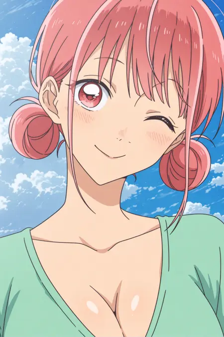 Hina:1girl, WHina, 粉色头发,粉色眼睛,双丸子头,