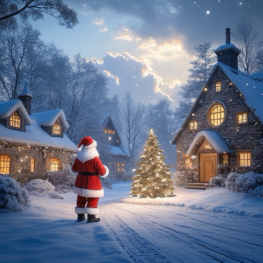 Santa Claus illustrations illuminates town