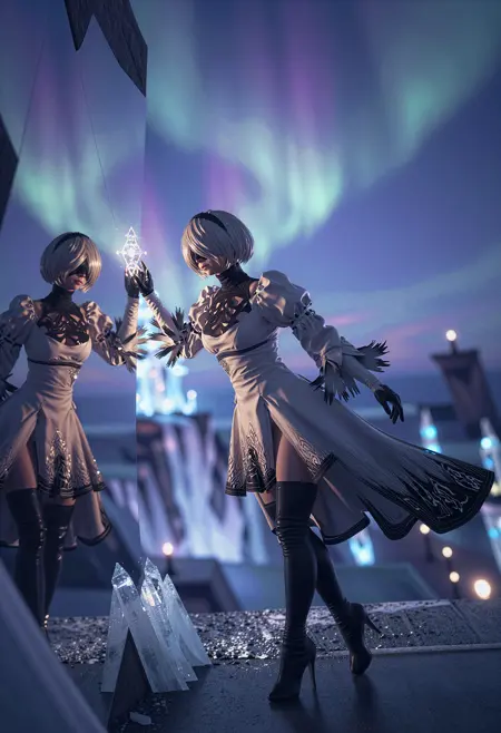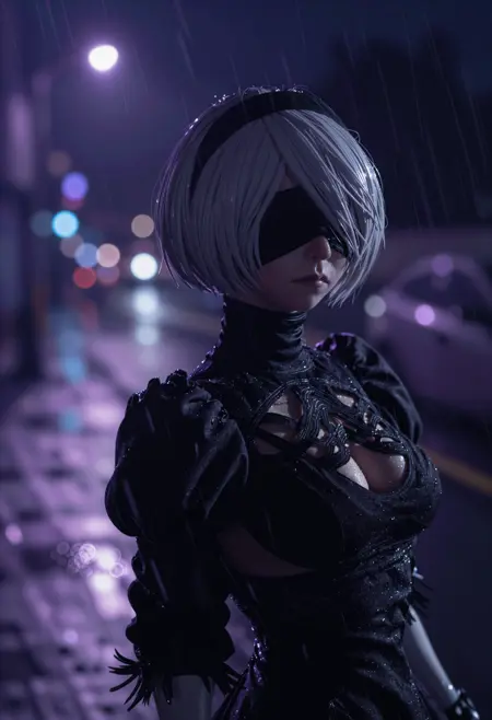 손가락이 약간 어색하며, 인페인팅이 필요할 가능성이 있습니다. 모델이 2B의 옷 소매에 혼란을 느꼈던 것 같습니다. :/