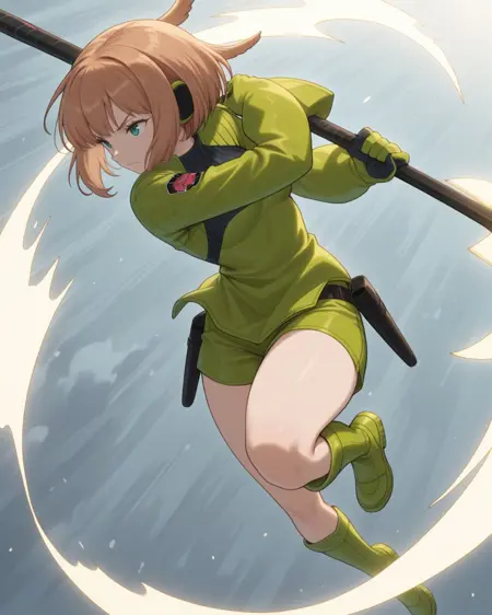 基础服装:绿色夹克、手套、短裤、绿色鞋履