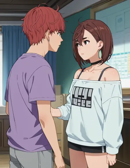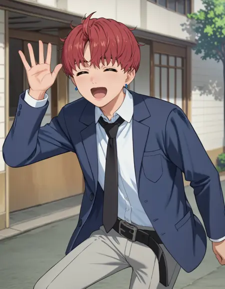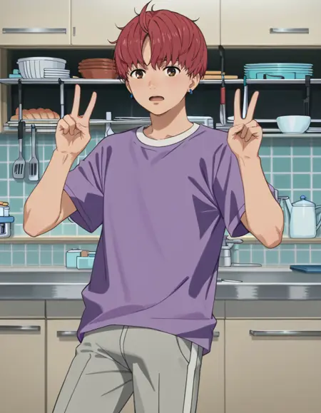 <lora:jin_enjoji-dandadan_s1_v2-anime-soralz:1>, jin enjoji (dandadan s1), 短髪, 赤髪, 茶色の目, ピアス